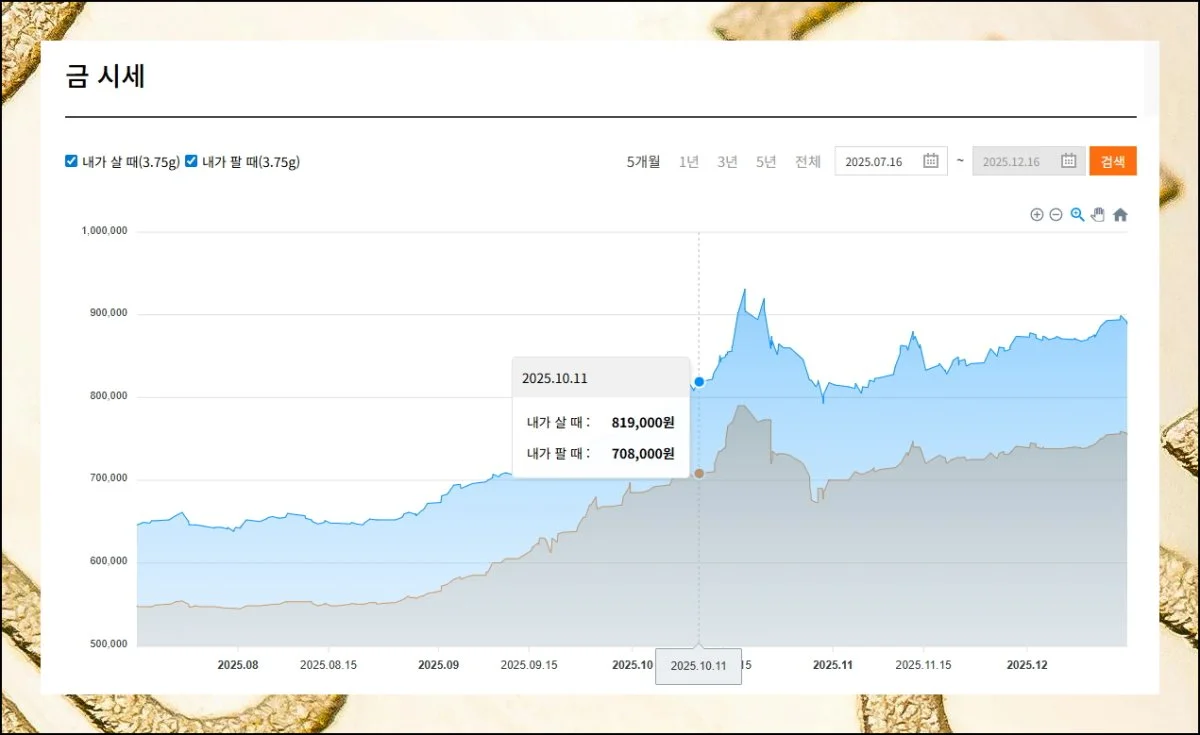 1돈가격팔때와 살때가 지속적으로 갱신되니 최적의 거래 시점을 포착하기 좋습니다.