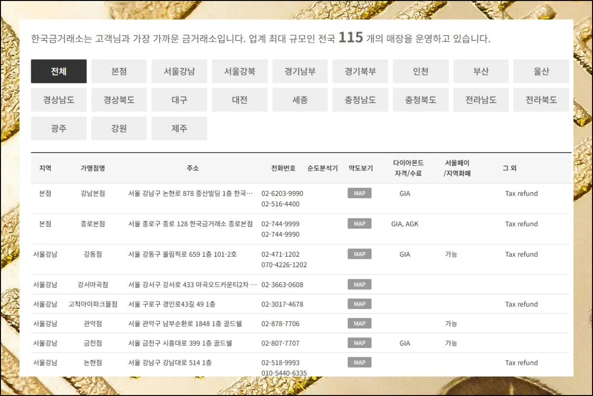 전국 여러 곳에 한국금거래소가 운영되고 있어서 반드시 서울 종로나 동묘역까지 이동할 필요는 없어요.