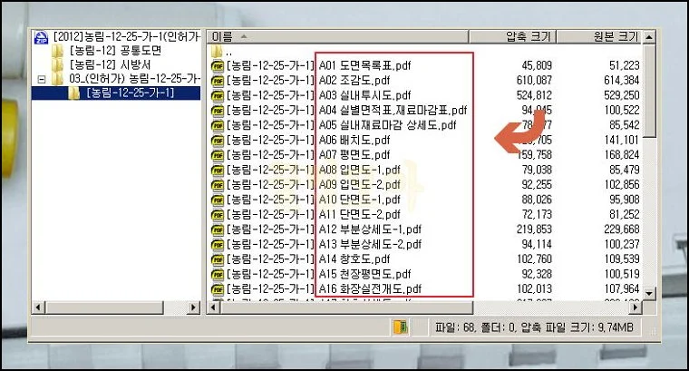 인허가용 건축도면 압축 파일을 해제하면 건축 과정에서 요구되는 모든 도면이 체계적으로 구성되어 있어요.