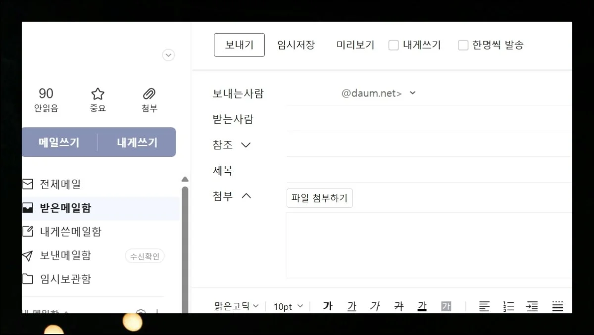 다음 홈페이지를 열어보세요. 이메일 서비스 화면으로 들어갑니다. 왼쪽 메뉴판에 내게쓰기 항목이 보일 거예요.