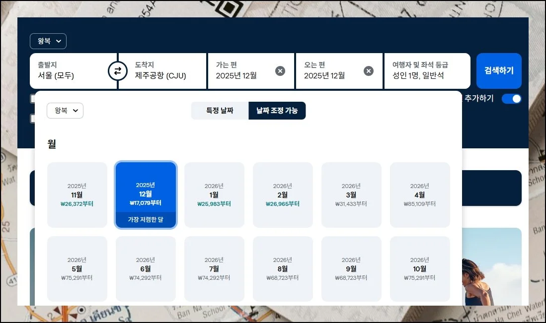 특히 성수기가 지나고 나면 1만 원대의 놀라운 금액도 종종 등장해요. 다만 화면에 표시된 요금은 기본 운임이라서 실제 결제할 때는 조금 더 높을 수 있다는 점을 기억하세요.