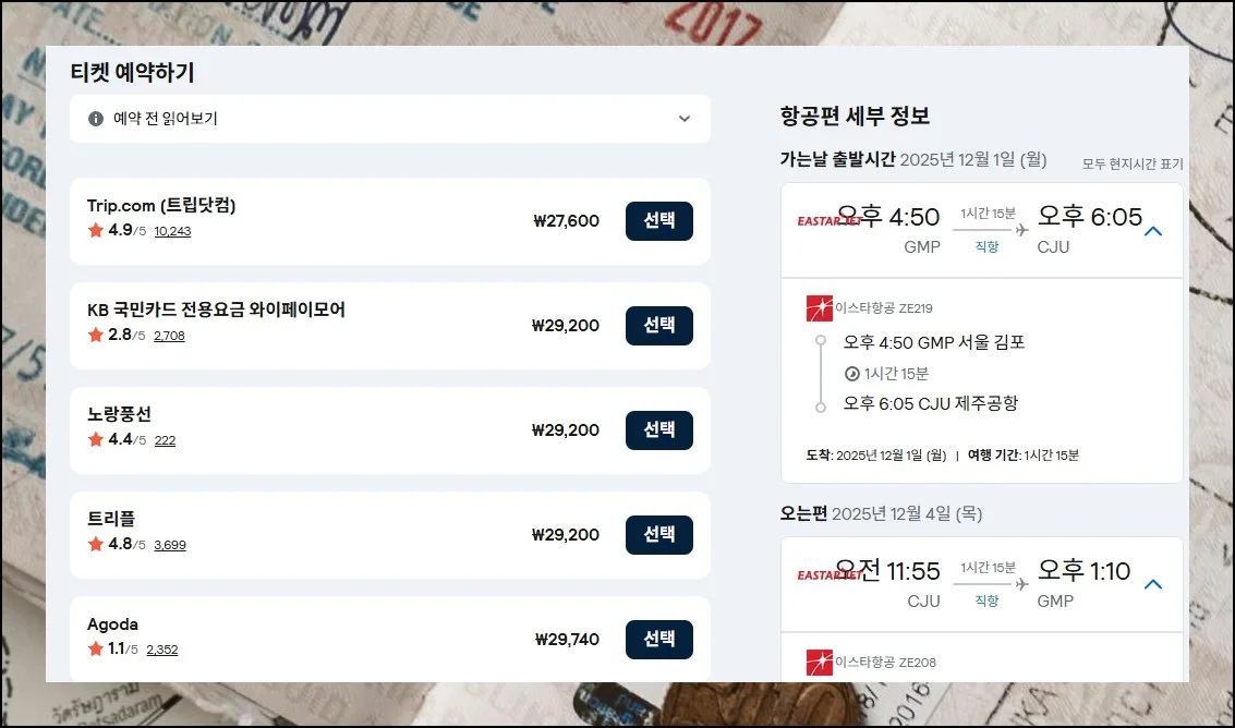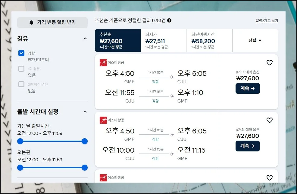 스카이스캐너 같은 검색 사이트를 이용하면 제주도로 가는 땡처리 티켓을 쉽게 발견할 수 있어요. 동일한 항공편인데도 구매 방법에 따라 금액 차이가 크게 나기 때문에 직접 비교해보는 게 중요합니다.