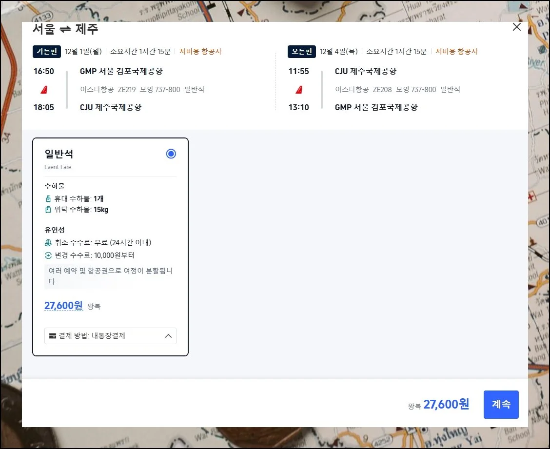 예약을 완료하기 전에 최종 결제 금액을 자세히 살펴보는 게 중요해요. 화면에 표시된 비용에는 기본 운임과 유류할증료, 공항세 등이 모두 포함되어 있습니다.