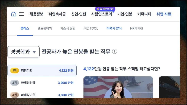 사람인 포털의 “취업 자료” 메뉴에서 취업 준비에 필요한 다양한 자료를 만나보세요. 지원 서류 양식뿐만 아니라 실전 채용 노하우까지 풍부하게 준비되어 있어요.