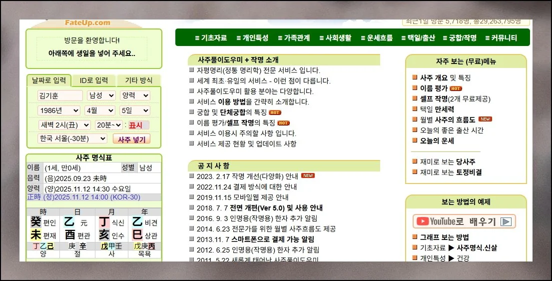 당사주부터 오늘의 흐름, 이름 짓기, 만세력까지 비용 부담 없이 다양하게 활용할 수 있습니다.