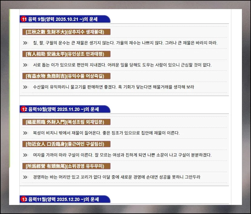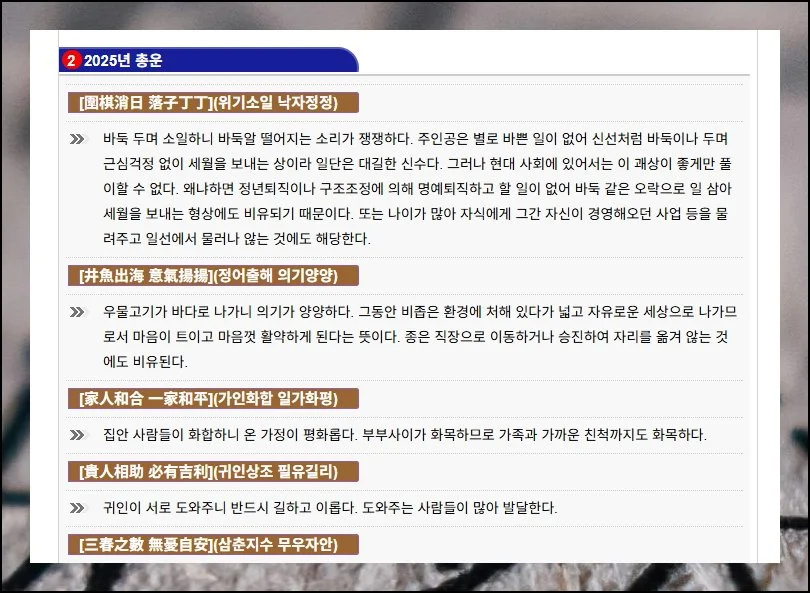 이런 기초 분석이야말로 2025년 한 해 운의 흐름을 파악하는 출발점이 됩니다.