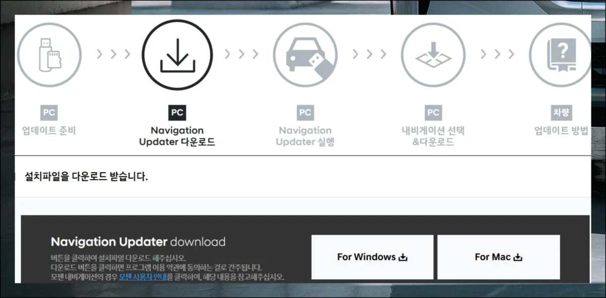 현대자동차 네비을 최신 상태로 만들려면 몇 가지가 필요합니다. 공식 사이트에서 제공하는 전용 소프트웨어를 받으세요.