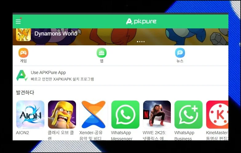 스마트폰이나 PC를 활용해 APKPURE 사이트를 방문해보세요. 이곳은 PLAY 스토어가 없어도 앱을 내려받을 수 있게 도와주는 플랫폼입니다.